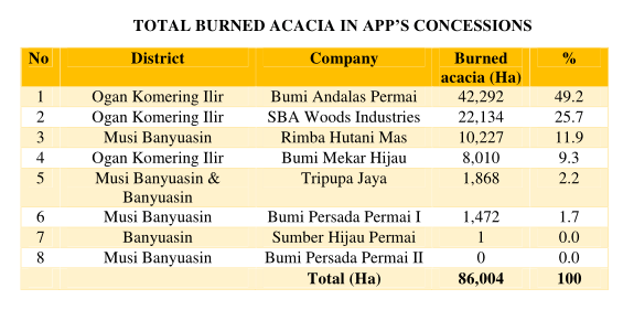 TOTAL BURNED ACACIA IN APP’S CONCESSIONS
