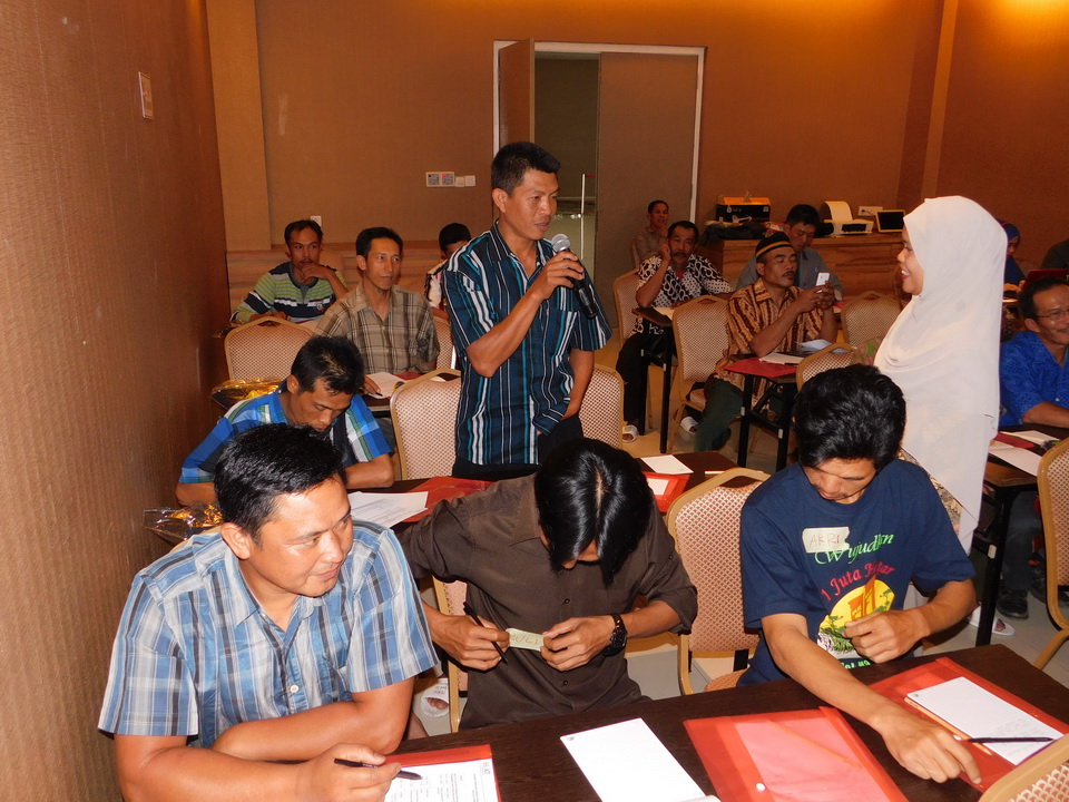 Pelatihan ini sendiri bertujuan untuk memberikan pemahaman tentang pembuatan peraturan desa dan kelompok sebagai pendoman pengelolaan Hutan Desa dan Hutan Kemasyarakatan ungkap Koordinator Kegiatan Bejo Dewangga.